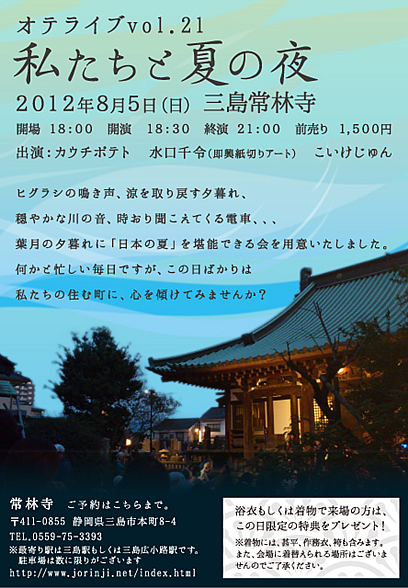 出演:カウチポテト / 水口千令(即興紙切りアート) / こいけじゅん(w.ギタロンむらちゃん)