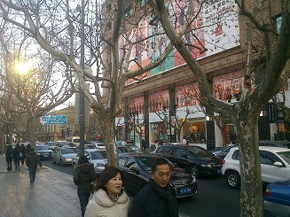 奥の建物は昨年末にオープンした上海のUNIQLO旗艦店