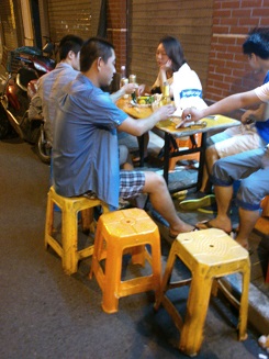 日が沈む頃になると 川辺の店たちがライトアップを始める