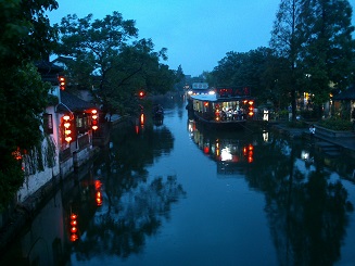 しかも赤い提灯が水面に映り 幻想的な雰囲気