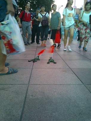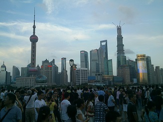 上海市内の 人や車や飛行機があつまるようなあんな場所では